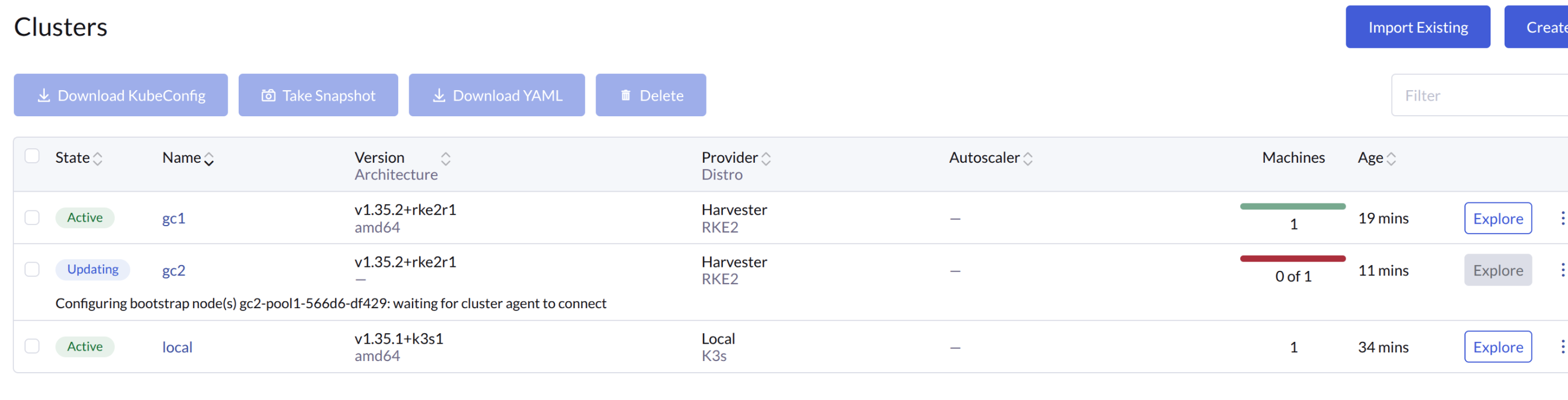 Importing of Harvester Clusters into Rancher