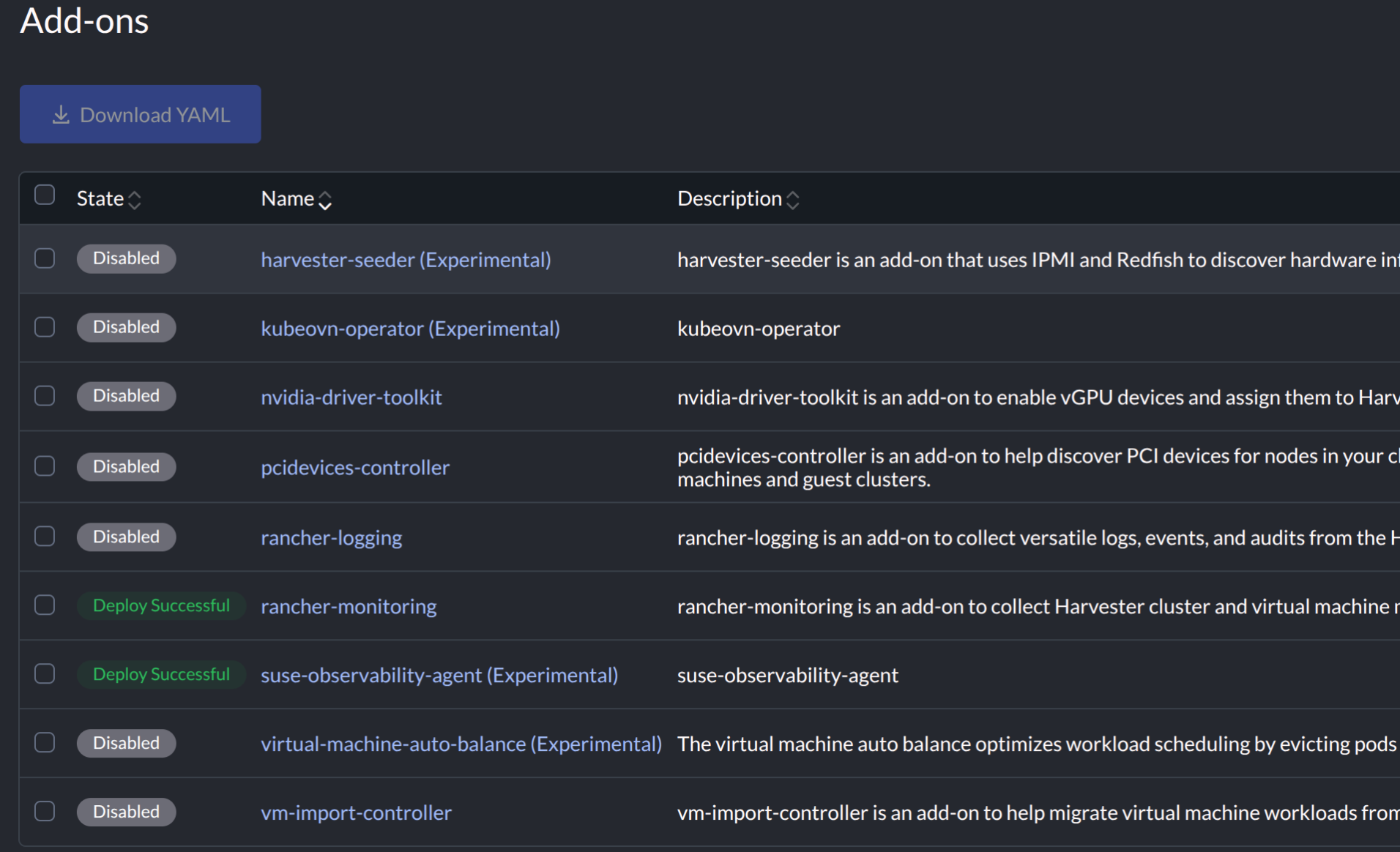 SUSE Observability Agent is an experimental add-on. It is not included in the Harvester ISO, but you can download it from the experimental-addons repository. For more information about experimental features, see Feature Labels.